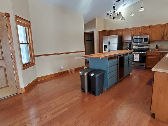 Sprawling ranch home with perfect layout & location with an abundance of updates! Walk in the front door and enjoy the vaulted ceilings above the open concept kitchen, dining & living rooms. Huge, eat in kitchen is great for entertaining, split bedroom layout & fully finished walk out basement makes room for all of your guests! Lower level has an additional room for an office/bedroom & a separate workout room + storage room. Enjoy the walk out with patio off the lower level family room & wet bar. All of this on just over an acre, steps away from the river ridge trail & swan park!