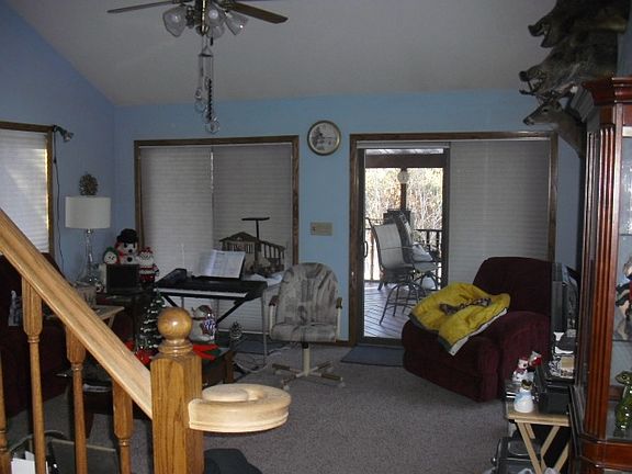 Great spot on 5.71 wooded acres for this contemporary home built in 1999. This home has many extras including an underground sprinkler system and a second two-car garage. Great hunting spot. Must see the covered deck - great for summertime entertaining. Price includes riding tractor with snow blower attachment.