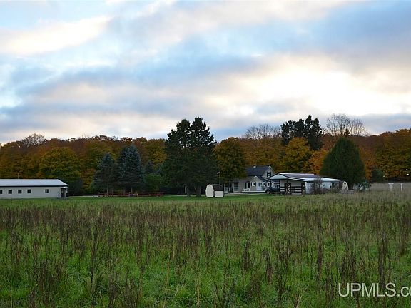 Fabulous Farm property! This 2-3 bedrm. updated farm house is just adorable and features lots of natural light, open living/dining kitchen area. main floor master bdrm, bath and laundry plus the perfect covered porch to sit back, relax and enjoy the view. Open fields lined with hardwoods, apple and plum trees plus an abundance of wildlife, (deer, turkey & geese). Perfect set up for Hobby farm, as there is an outbuilding with 3 stalls, electric & water plus a separate 30x64 pole building that includes finished rc. room, & office, bathroom and a workshop/garage. So many ways to enjoy this beautiful property! Maple Trees for the tapping, fields for growing, plenty of room for animals and a wonderful place to call home situated among a very well established farming community, only about 30 miles from Marquette, Munising & Escanaba, 11 miles from Lake Superior!
