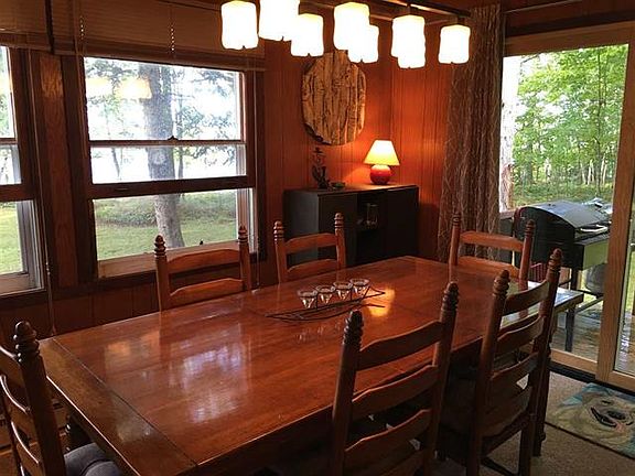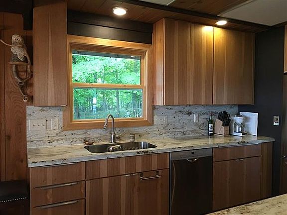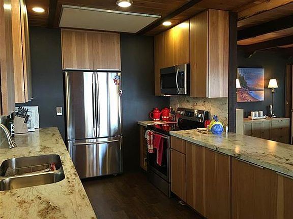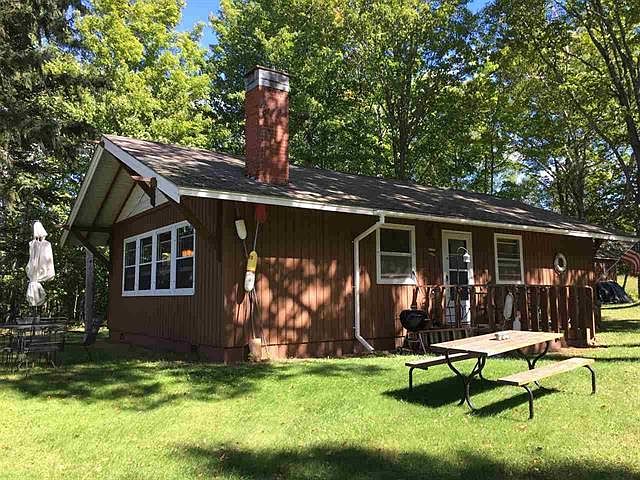 Cozy Styled Chalet 2 bedroom cabin for Year Round Comfortable Living on 256 ft of Lake Superior frontage with an Awesome Panoramic view overlooking Oronto Bay and beyond to the Apostle Islands. New hickory kitchen cabinets, Wood Grained tile floor and stainless steel appliances. Stackable washer and dryer is on site off bedroom hall ready to be Hooked up. Full bath with tub and shower, vanity and linen closet. Family room space features a custom rock wood burning fireplace and terrific view of Lake Superior. Outstanding view from a full wall of windows facing Lake Superior. Patio door open to a grilling deck off dining area and kitchen with eastern morning exposure. Nice spacious yard for fun activities with a fire pit. Shed for storage. Awesome, Spectacular Sunsets and star gazing.