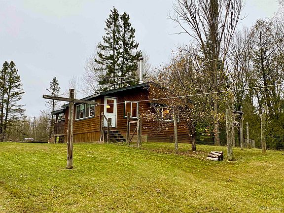 Are you looking to live the country life with just a little bit of acreage and elbow room? How about an adorable quaint little home on 10 acres in Trenary? This four bedroom one and a half bath home is move-in ready and just waiting for its new owner! You’ll love the big mudroom right when you walk in that also has a nice cozy woodstove, it’s the perfect place to hang out and warm your boots and your jackets up for the next outdoor outing. The windows in this home are all new in the last two years along with the metal roof on the HEATED garage. The inside of the home has very nice hardwood flooring and the bathroom has a newly installed step in stone shower. The kitchen is adorable and has all the storage you need! One bedroom is a bit bigger and right next to the large bathroom while another bedroom has an attached half bathroom, super convenient! If you’re looking to do a little bit of farming and gardening this should be right up your alley! Besides the very large garage being heated there is a barn with a hayloft perfect for a horse or two or maybe some goats? And then the chicken coop is all set to go! There is a pasture that’s fenced in already with three strands of electric and then a separate fenced in garden area complete with well established asparagus, both green and purple! The property itself is abundant with many varieties of raspberries, blackberries, different apple trees, many perennial gardens as well as rhubarb. Looking to do a little deer or bear hunting? You’re in the perfect location!