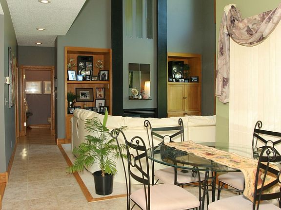 Beautiful south facing 3-4bedrm, 2.5 bathrm home, with insul. 3-car gar., lrge irrig. lawn, patio just off kitch/din. area and fire pit with prepared area to the back of yard near playhouse and priv. wooded area. Inside the home boasts of high ceilings, grand foyer, cherry cabinets, 6" oak basebrd trim, solid oak doors, beaut. staircase & friendly layout. 2nd flr has huge bedrms & lux. master bath. Inflr. heat, ext. amen. & golf course make this an exec's. dream. Request info. sheet 4 more!