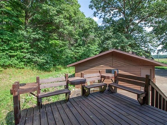 5 acre wooded lot offers great hunting, peace and quiet, nicely manicured yard, with play unit for the kids. This adorable home has a great Master suite with large tiled jacuzzi tub, huge master close and main floor laundry of off master suite. Newer carpet in the lower level family room which could be another bedroom suite w/exterior access. Plus a office and tons of storage. 42x30 Workshop and a loft with 2 rooms over the workshop partially finished with great possibilities. Motivated Seller!