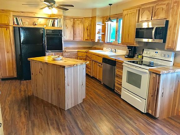 1950's ranch home with some nice space and a large yard! This 2 br, 2 bath home features an updated kitchen! The original cabinets were refaced with custom Hickory doors and additional cabinets were added including a movable island. Take a look at this farmhouse sink! There is a nice pantry, plenty of counter space and cabinets and an additional hall pantry for those larger items. The kitchen is open to the dining area which features the original built-in hutch. The bright and cheery living room has the original oak hardwood floors and another built-in cabinet. Both bedrooms are decent size with closets. The full bath has a tub and shower and the second bath has a shower and the stacked washer/dryer unit. The office also has another closet and the access to the back deck. Did I mention all the closets? There is also a closet in the front entry and a cedar lined closet in the hallway along with more built-ins. The basement has space to roam along with a bar and the start of an additional room. There is a 1 car attached garage, storage shed and a very practical breezeway from the garage to the home. All the appliances are included. This home even has a drilled well, central air conditioning and a large yard. Take a tour of this home soon!