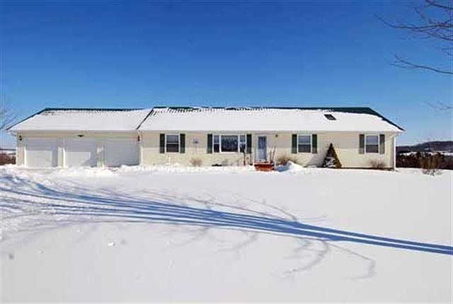 Panoramic country views abound from this well built & maintained 3BR/2BA Ranch. Spacious LR & comfy family room w/fireplace & built in knick-knack/storage areas. Main level master bedroom w/walk-in closet & bath access. First floor laundry room w/access to the 30 garage! Cooks delight kitchen w/ custom built cabinetry, dinette, walk-in pantry & much more. Solid wood trim & 6 panel doors! Quality DOES matter. Full basement offers excellent storage/hobby/exercise space. 80' pole bldg too! 21.1 acre