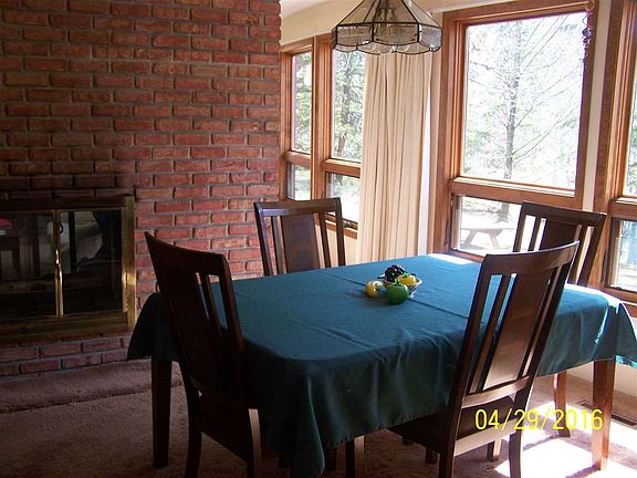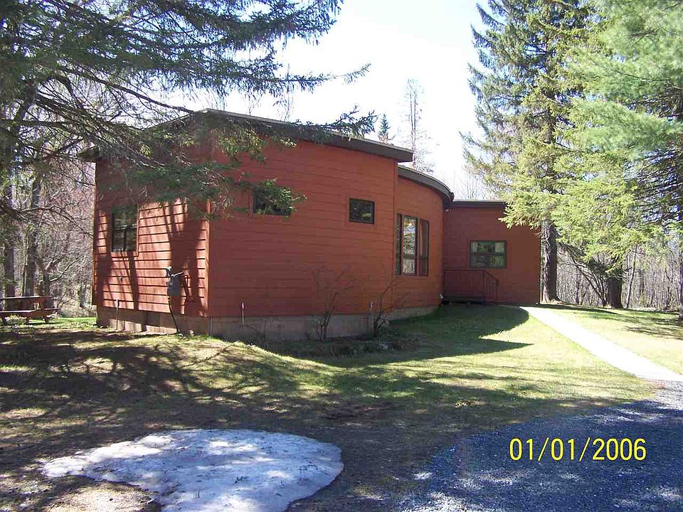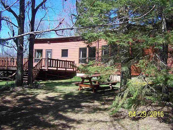 Truly unique well built home in excellent location in North Ironwood. Entire home is curved to enjoy the sunlight. Deck overlooking the trout stream. Large living room with see through fireplace into the dining room with plenty of windows. Large kitchen with plenty of cabinets and either a breakfast nook or small family room. Master bedroom with bath on one side of house and additional 2 bedrooms and bath on other side. Too many new updates to mention them all. 4 car pole building (24x42) with almost 20 wooded acres. A truly must see! Motivated seller!