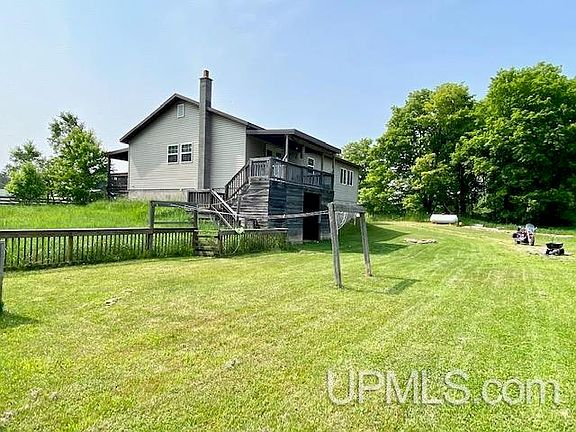 This custom-built one owner home sits on 2.20 acres in the country! Built in 2012 the home has an open floor plan that's absolutely perfect for families, entertaining, holidays and gatherings! The kitchen is so spacious and well laid you'll appreciate the large open pantry and the abundance of countertop and cabinet space The L-shaped island/breakfast bar works well for casual dining or your morning coffee. The formal dining area leads to the back porch which has great views of the barn, pastureland and apple trees. The spacious master bedroom suite has his and her walk-in closets, a tiled shower and separate soaking tub. The 2nd bedroom is currently being used as an office and has good closet space. The full walk out lower lever is where you'll find the family room with built in bar area, a large workshop, wood storage and direct access to the backyard. The 30x40 barn is insulated and provides storage for lawn care and snow removal equipment. The barn has a dedicated space for chickens. Take a stroll on the mowed walking path. Home is located just of US 41 on H44 - conveniently located between Marquette and Escanaba. Survey available.