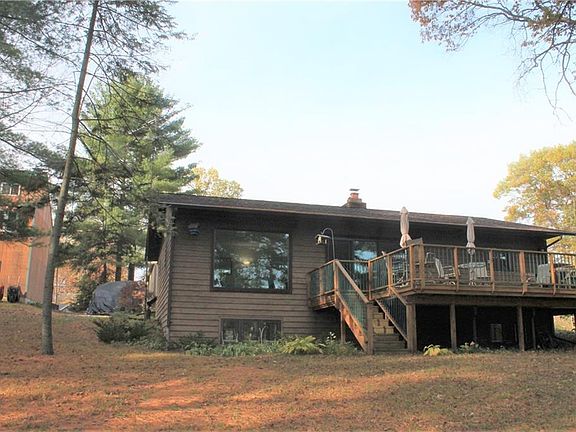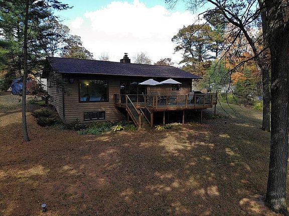 Tainter Lake..... 4 Bed 2 Bath Cedar Ranch with lovely Deck overlooking the lake with low elevation to your included dock, boat lift to hold 2600# boat with electric lift and Jet Ski lift too. New roof(3 yrs) updated deck and rails, large 3 window patio door off your eating area and amazing picture window in your living room. You will enjoy your two large bedrooms on the main floor with full bath. More room in your look out basement with a Family Room, Full bath and two additional bedrooms. Laundry room in the lower level includes 2 dryers great storage(Laundry Rough in on main level in entry closet with water RI, Electric would need to be added for dryer hook up, box is there). How about your 24x36 concrete floored Storage shed with work bench and great storage up to 3 cars possible. Life on the Lake you can't beat it! Don't miss out on this home! 14 month Buyer Home Warranty Included!