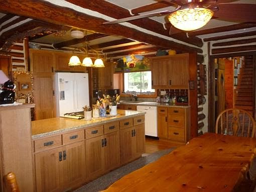 Firm, sandy frontage AND a sandy beach on a full recreational lake! Fantastic property with lots of trees to help with privacy. Original log cabin has been nicely renovated. Kitchen has walk-in pantry. Fireplace has a pellet/corn/wheat insert. Newer addition has great features including a master suite with an 8x10 walk-in closet. Listing includes entire parcel. Acreage and frontage per GIS.