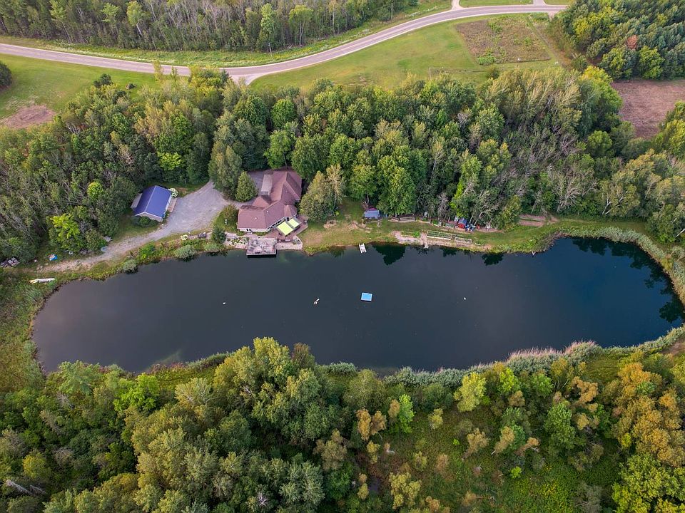 Tucked away on 9.5 acres, this stunning 3-bedroom, 2.5-bath zero-entry ranch is more than a home - it's a private retreat. Over 2,400 sq ft of thoughtfully designed living space showcases granite countertops, custom cabinetry, and rich millwork, creating a warm, timeless feel. Step outside, and serenity surrounds you. An expansive patio overlooks your own 2+ acre private pond - a sparkling sanctuary perfect for morning coffee, lazy afternoons of swimming or fishing, and quiet evenings watching the sunset ripple across the water. The property invites you to slow down and savor life with a charming bath house, outdoor shower, garden barn, raised beds, low-maintenance perennials, and a flourishing orchard that changes with the seasons. For the hobbyist or craftsman, a 30'x40' shop with a heated workshop offers endless possibilities. The attached heated 2+ car garage even features an electric lift for easy attic storage. Whether you dream of hosting joyful family gatherings, tending to gardens, or simply enjoying the stillness of your own hidden oasis, this homestead offers it all - with the convenience of quick access to major cities, airports, shopping, and medical care. Come discover the peace you've been searching for.