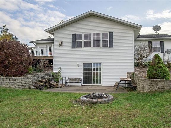 Amazing views!! This house is on 2 acres just east of the Menomonie city limits! 5 minutes from Menomonie and 20 miles from Eau Clarie! Open design! Main floor living room and main floor family room! Spacious kitchen with lots of cabinets and storage! Three bedrooms on main level! Main floor laundry! Lower level is walk out and has another family room, built-in bar area, and rec room! Basement also rough plumbed for third bathroom! Fiber optic for internet! Enjoy the outdoors from the covered front porch, wood deck or concrete patio! Large attached garage is insulated. Storage shed for extra storage!