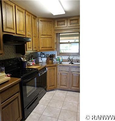 Awesome views!! This property has sandy frontage on upper Tainter Lake. Lot has mature trees - lots of shade, home is close to public boat landing, in quiet neighborhood on dead end road. House has three bedrooms, main kitchen & 2nd kitchen in lower walk-out level & a 4 season room. Great woodworking detail & built in cabinets. Three heat sources - nat. gas, electric & wood (wood stove in lower level). PRIVATE!
