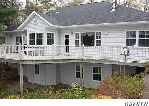 Custom built home on Tainter Lake! Private wooded lot on upper Tainter. House features breakfast nook, formal dining room w/wood floor, master suite w/private bath & lg closet, gas fireplace in living room, & main floor laundry. Lower level is walk-out, stubbed for 3rd bath & wet bar & ready to be finished! Could double total square footage! Free standing wood stove in basement. Brick accents on front of house, covered front porch and lg. back deck off back! Storage shed. New roof in 2012!