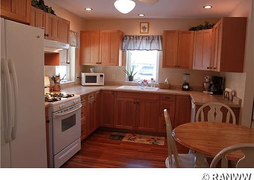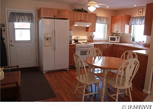 Cute and Cozy!! This newer energy efficient two bedroom home is located close to Tainter Lake & only minutes from I-94. The house features an open design, eat-in kitchen, one & 1/2 baths, & main floor laundry. There is a free standing gas fireplace in the living room - great place to warm up on the cold winter nights! The large detached garage includes work shop area & extra storage! Mature trees, garden areas, apple trees, pear trees, raspberry bushes & flower beds! Hook up for generator!
