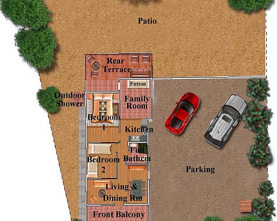 • Exterior features: Stucco, Wood, Cement / Concrete, Metal