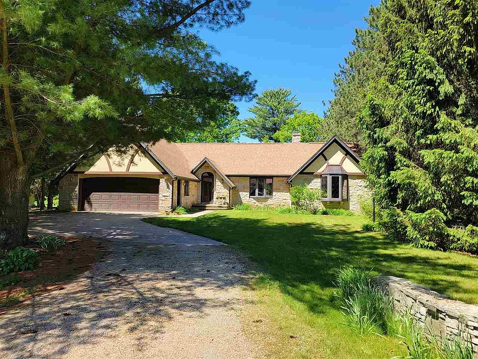 ENJOY THE VIEWS as you head home to "RIVERSTONE COTTAGE" our ELEGANT, WELL MAINTAINED SOLID STONE STORYBOOK CHARMER on the LITTLE WOLF RIVER. Perfectly positioned on 1.25 partially wooded acres (as per CSM) with approx. 250' of WATERFRONTAGE for fishing/kayaking. COME HOME and RELAX in this CUSTOME ONE OWNER RANCH offering 2BR's 2 FULL BATHS, attached garage + additional 22x24 detached garage for toys etc., full basement to finish if you wish, gorgeous MARBLE FP, Built in bookcase, Patio doors to PRIVATE YARD and "DAKOTA" stone patio, Shade trees, stone paths & gardens. Truly 1 of a kind!
