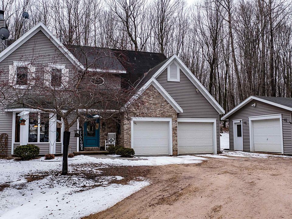 This BEAUTY checks every box! If you're looking for a move in ready home with all the conveniences to town but the privacy of a wooded 2+ acres then look no further. You will love the cozy feel of the gas fireplace the moment you walk in the front door, the open concept layout to the kitchen/dining room, main level laundry and patio doors out to the large deck ready for your entertaining! Upstairs you will find the spacious master suite and two additional bedrooms all with walk in closets & an additional guest bathroom. In the lower level you are met with a an additional living room with wood burning fireplace and hot-tub conveniently situated near the bar area and half bathroom! Outside you have an additional garage ready to store all of your toys and tools or just get some work done!