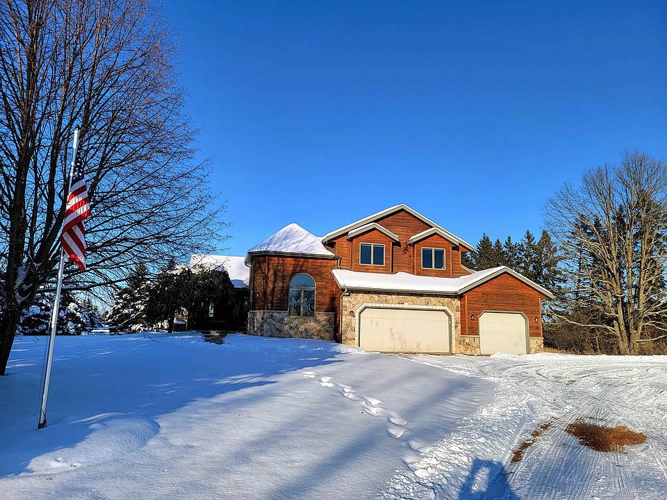 SPECTACULAR PRIVATE SETTING FOR THIS QUALITY CUSTOM BUILT ROSELLE CONSTRUCTION CEDAR/FIELDSTONE 2 STORY BEAUTY on 8.75 pastoral/partially wooded acres...Calling all Outdoor Enthusiasts!!! Grab your snowshoes or sleds and hit the groomed State Trails right out your front door or head to the World Famous Wolf River System. This beautiful home offers everything we look for today...WFH office with double sided FP, LARGE LR/FR's w/views for miles, Patio doors to custom concrete patio, curbing, NEW ROOF, Custom Kitchen w/center island, Formal Dinning Room with access to SCREENED IN PORCH, updated light fixtures, Fresh paint, HUGE MUDROOM/First Floor Laundry w/ pantry area and tons of storage, private pond with sandy beach, Horse barn with several stalls, electric and water.