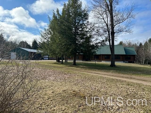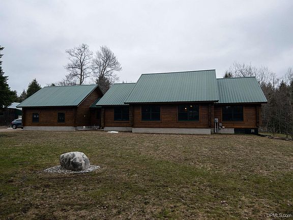 This property is a dream come true for anyone who loves log homes, acreage and spacious garages. The square timber log home is situated on a generous 42-acre lot, providing ample space for outdoor activities and privacy. The vaulted ceilings add to the rustic charm of the home, creating a warm and inviting atmosphere. The attached garage allows for easy access to the home, especially during inclement weather, and provides additional storage space. For convenience, the first floor features two bedrooms including a master, an additional bathroom, and laundry area, making it easy to take care of everyday tasks without having to go up and down stairs. The full finished basement has a kitchenette, large family room, 2 more bedrooms, and bathroom providing additional living space for entertaining guests or accommodating a large family. The HUGE 40 x 80 garage is a standout feature of this property, with a 12-foot door providing plenty of room for large vehicles or equipment. The garage also includes two offices and a 1/2 bathroom, making it an ideal space for a home-based business or hobby. The electric heat and wood stove ensure that the garage stays warm and comfortable year-round. Finally, the two lean-tos provide additional storage space for outdoor equipment and tools. The location of this property is also a major selling point. Being located not far from Munising means that it is close to many outdoor recreational activities such as hiking, fishing, and boating. Additionally, being only about 30 minutes from Marquette provides easy access to city amenities such as shopping, dining, and entertainment. Overall, this property offers a unique combination of a beautiful log home, ample acreage, and a large garage with many possibilities. If you are looking for a spacious retreat with plenty of room to grow and play, this property could be the perfect fit for you.