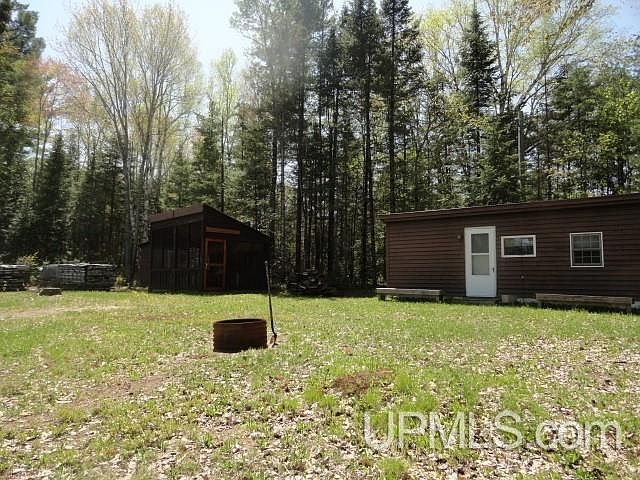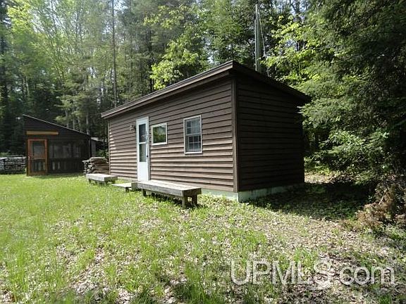 Cozy 8x24 "camp" that features kitchen area with sink, refrigerator and 2 burner LP cooktop; twin beds at one end and 3/4 bath at the other. Plenty of storage under the beds and in the bench at the foot of the bed. Cedar sided with metal roofing on shed styled roof. Perfect place to relax and enjoy while you build your permanent home - OR - just enjoy getting away. Property also includes an 11x16 screened in pavilion, an 8x16 storage shed, and block constructed well house. Branch of Sturgeon River borders the Northern boundary of the property.