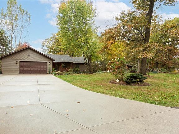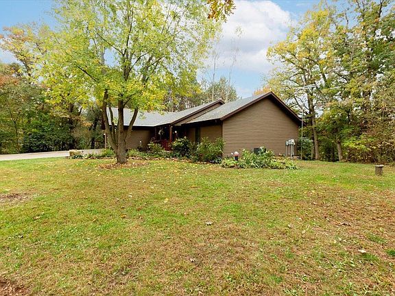 Fall in love with this country ranch surrounded with beautiful trees and over a 100 perennials. This wonderful home in move in condition surely shows Pride in Ownership on 1.19 Acres. This 2 bed room 2 full bath with main floor laundry, vaulted ceiling in the Living room with 2 sided fireplace to the dining area and patio door to your nice deck overlooking your private back yard. Newer LVP flooring on the main level, kitchen with breakfast bar, wall pantry cabinets, stainless appliances included. Master Suite with Private bath and walk-in shower, see the built-in hamper cabinet off the shower. FULL unfinished walk out basement with egress window and rough in for a full bath already for you to finish off. Check out your heated 2.5 garage , storage shed, concrete driveway, lots of raised planters. Home is Pre-Inspected and Well Water Septic inspected too. Buyer 14 month Home Warranty included! Don't miss out on this charmer!