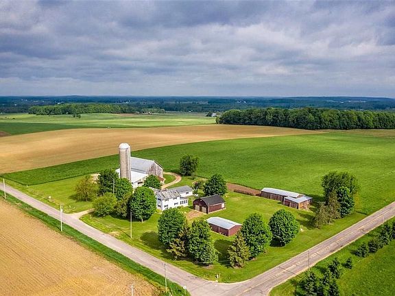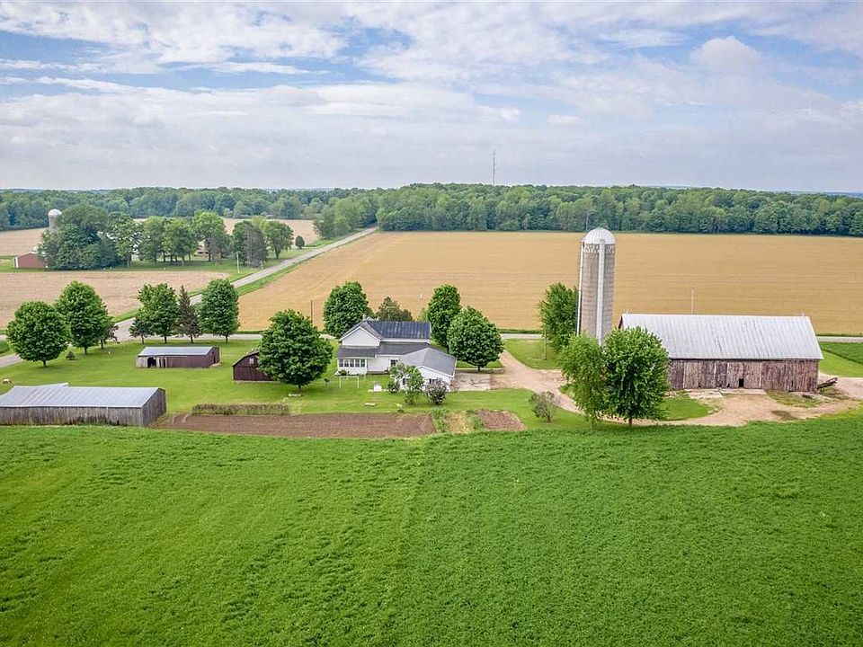Country living at it's finest! 17.67 +/- acres, mostly tillable! 2624+/- sq ft 5BD, 2BA home is sure to please. Main level offers a large galley kitchen with an abundance of cabinetry. Family room with patio doors and pellet stove. Main floor laundry. 3 spacious BDS, full BA, huge living room, dining room, 3 seasons room, and front foyer. Upper level offers a loft area, huge walk-in closet for storage, 2 spacious BDS and full BA. 3.5 car detached garage. Barn with lean to and silo was previously used for beef cattle. 3 additional outbuildings hold no value. Property sold as-is.