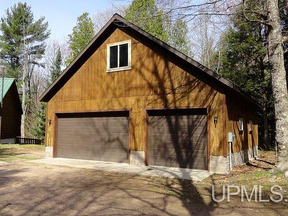 Beautiful 3 bedroom, 2 bath Hiawatha Log home situated on 9+ wooded acres in the middle of Hiawatha National Forest. Sit on your custom designed deck overlooking the Sturgeon River running through your property, or enjoy a closer view from the gazebo or foot bridge. Home features newer kitchen with granite countertops, built in appliances and Hickory cabinets all specially designed for this home. Glassed in dining area off kitchen overlooks back yard; open beamed ceilings in living room, stone fireplace with energy efficient wood burning insert, upper level master suite with full bath, walk in closet and office. Full walk out basement is completely finished into family room/exercised room, laundry, and den. Loads of storage throughout home; attached 2 car garage plus 30 x 32 detached 3 car garage with outside stairway to upper level. This home offers so much more and must truly be seen to be fully appreciated.