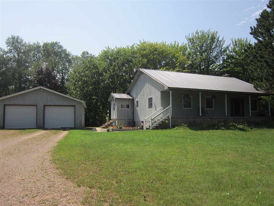Spacious 3-4 bedroom, 2 bath home on 47 wooded acres. This home features large living room, family room in basement, office/den or 4th BR, 2 fireplaces & sauna. Covered front porch and also a deck off the dining area. Many fruit trees, garden area and flower beds. Many upgrades including natural gas boiler in 2008, steel roof and septic & drainfield in 2011. 200 amp service panel. Zoned Town Development with over 450 feet of frontage on M-28 along with 30x56 partially finished pole barn to promote your new or existing business adventure. Plus a 2 car detached & 1 car detached garages for all your toys!! Convenient location, but private setting with trails throughout great for skiing!