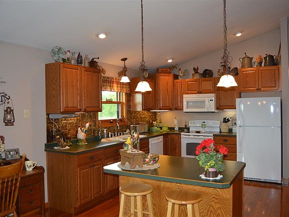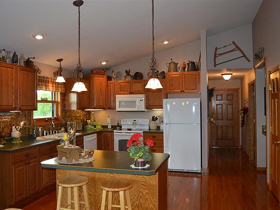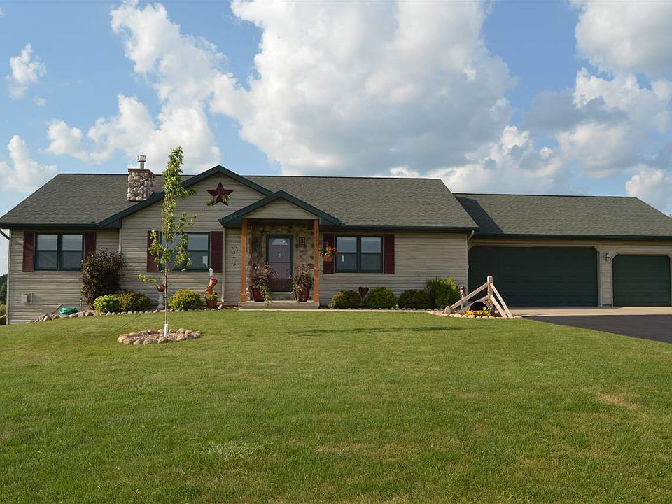 Immaculate 3 bedroom, 3 bath custom built ranch with fully finished walkout basement on a beautiful 5+ acre lot. Pride of ownership is obvious. This amazing home offers an open concept with vaulted ceilings, solid oak doors and cabinets, first floor laundry, split bedroom design, 2 field stone fireplaces, a large maintenance free deck, a huge rec room in the basement with dry bar plus exercise room and full bath. The yard has beautiful perennial gardens, a food plot to attract wildlife and shooting lanes for the sportsmen. You must see to believe!
