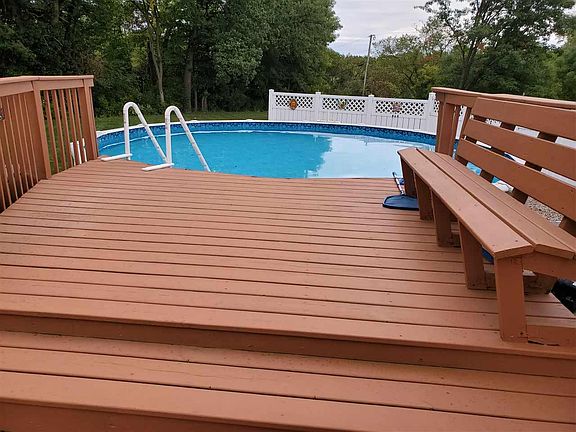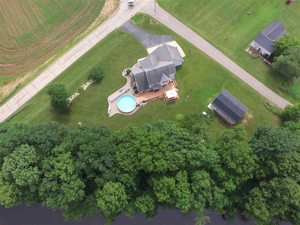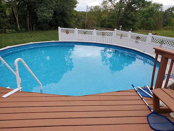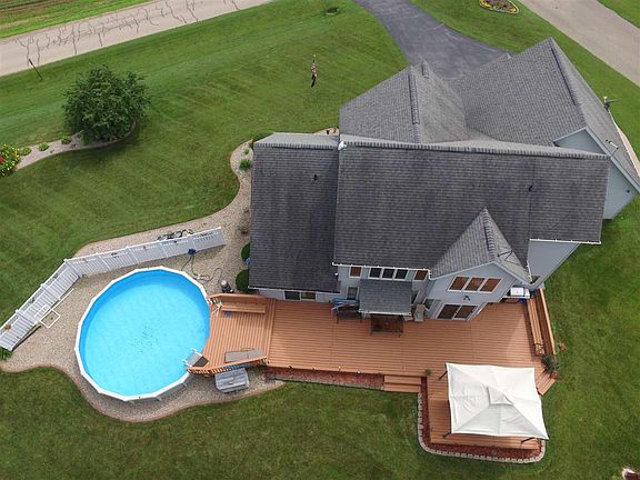 Beautiful Little Wolf custom one owner home with 1000 ft. of frontage and an extra garage on 3acres! 2753 sq. ft. 3-4 bedrooms, 2.5 bathrooms, gas fireplace, central air, 17 ft. ceiling in the living room with an open staircase, granite and dry bar in kitchen, sliding doors in kitchen and main bedroom to large pool with newer gazebo on the deck, 3 car garage attached and an extra garage with a room above. New London School district. Very well kept and maintained! A county park with 36 acres that has a paved road for your recreational use in walking distance.
