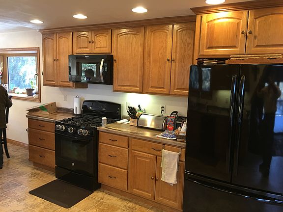 Three levels, walk out lower level, steel log cabin siding, two woodburning fireplaces, upper and lower. Home slso includes A 12 ft wide, 125 yrd long driveable dike to a permanent 40 ft wide dock, with electric boat lift, located on the Wolf River, on 3.5 acre lot. Home has brand new roof, new siding, all new electrical 200 amp service, with 14 kw hard wired Generator with auto start if power is lost. Also has all new plumbing, all new interior drywall, all new high effecient tilt and turn doors and windows. Includes a very large kitchen fully remodeled with a 7 ft x 4 ft island, all new kitchen cabinets, and lighting. Heated Garage with four stalls with a large workshop area. Home was extensively remodeled in 2015, at a cost of $370K, which included the new permanent dock and lift.
