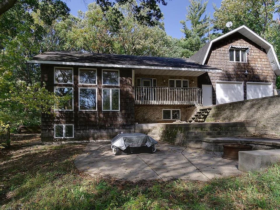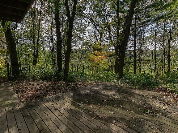 Tree lined drive leads to custom designed, open concept multi-level house nestled into a wooded home site. Numerous large windows create the sense of living in a tree house as you enjoy nature. The elevated position of the house provides a view through the trees to the 2 outbuildings & livestock facilities. Apple orchard, grapevines & numerous wild berry patches to augment sustainable living country style. Home has rich wood interior w/ solid pine paneling, extensive oak flooring, & maple cabinets. New kitchen appliances & lg walk-in pantry. Dining area overlooks the sunken 325 sq foot living room w/12' ceilings. Covered front porch, balcony off dining area & multi-level concrete patio make great areas for entertaining. Heated att garage and 24x30 pole building w/concrete floor & 2nd story, and 36x48 pole building w/hay storage & cattle handling chutes & gates. Septic is rated for 3 bedroom house. Frost free water hydrant in orchard area.
