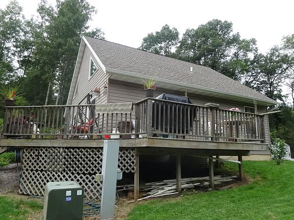 ''COUNTRY RETREAT'' - 4 bedroom 2 bath home/cottage built in 2008 situated on 8 mostly wooded acres. Property sits quietly nestled in a wooded setting and privacy. The home makes for a great full time residence or weekend cottage with 8 acres of hunting land with many maintained atv trails and trout fishing just a stone's throw away. Main level features a great room with cathedral ceilings, hickory kitchen cabinets, patio doors to deck, br, bath & laundry room. Open staircase to loft with master suite with bath & Jacuzzi tub. Mostly finished basement w/ 2 br's & family room. Garage w/ loft.