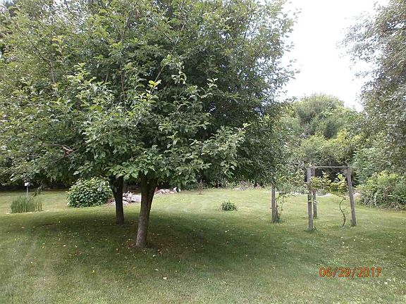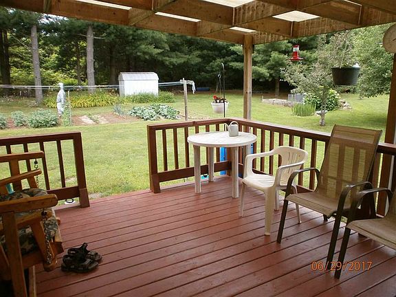 Ranch 3 Br ,1.5 Ba on 2.74 acres of country-style living . Horseshoe driveway (blacktop ),1 ,car att ,2 car detached ,11x20 garden shed ,garden shed 6x8 are some of the extra's .Updates include -new roof (2015 ),new LP gas furnace (2016 ) , windows ,doors .Fruit trees (apple ),grapes ,garden area garden shed , and roofed deck for your enjoyment . BONUS ,solar heat system to cut heat costs ! You want private back yard ,this is ? Plenty of land to roam 2.74 acres .