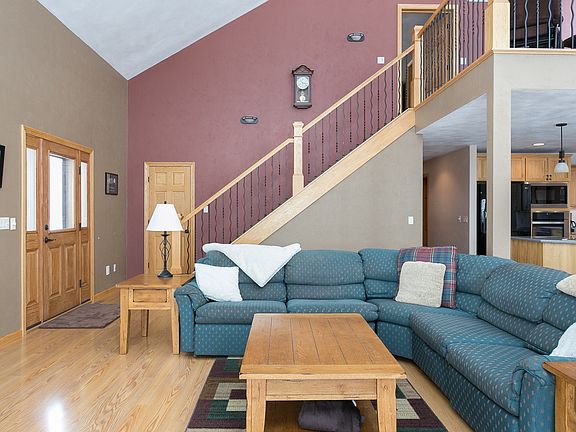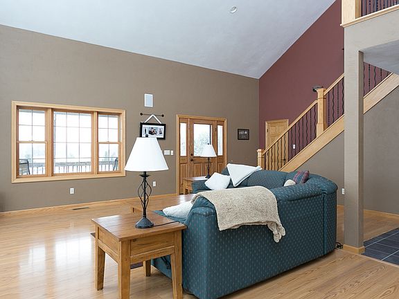 Custom home on 13 acres w/ 9 wooded acres. Kitchen has hickory cabinets, large island and under cabinet lighting. Great room with wall of windows & soaring ceilings. 2 bedrooms, full bath and mud room also on main floor. Upper has an enormous master suite with large walk in closet. Full bath has dual sinks and walk in shower complete with 3 shower heads and body jets. Lofted area is perfect for office. Unfinished walkout basement, central vacuum, set up for radiant in floor heat, pellet stove in basement, 1000 gallon lp tank, and wrap around deck are some of the many features of this home. Don't miss the 3+ car garage with large bumped out area. Garage has room for 3 vehicles, workbench, and toys for kids and adults.. Great views, good hunting.