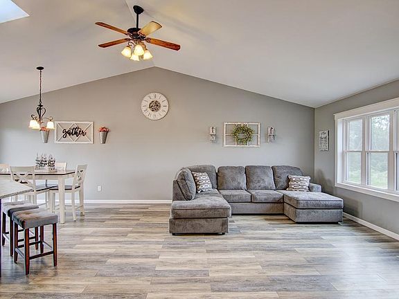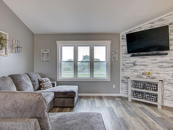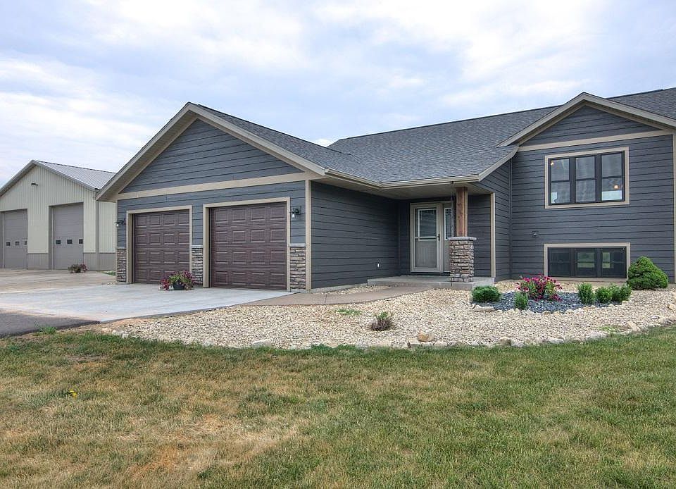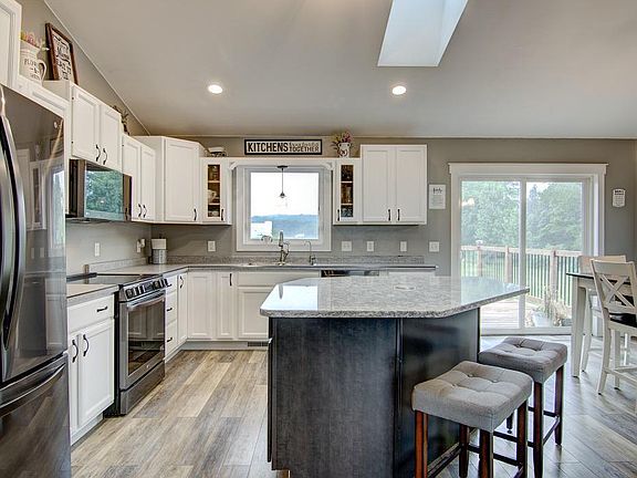 WOW!! Location, Location, Location. Just North of I-94, between Eau Claire, Menomonie, Colfax, Elk Mound, Chippewa. Do you want to run your business from home or have a large playhouse for all your toys? Home has 3 large bedrooms, 2 baths, open concept, new center island cabinets with Cambria countertop, counter also has power pop up tower, refinished main cabinets, all brand new appliances with remaining transferable warranty’s all on 2.72 acres. New roof, siding, windows, HVAC system, LVP in upstairs, deck, doors and trim. LL ready for your design. Pole Shed – 40x56, 2-12x12 doors on front, 1 10x10 on back, spray foamed walls, in-floor heat with secondary hanging heater, full bath, electric, domestic hot water, coax and data ran from house to shed. Buyer may run a business out of Pole Shed by applying with Elk Mound township to get a business permit. Included Quincy air compressor, cabinets/counter, tv on wall.