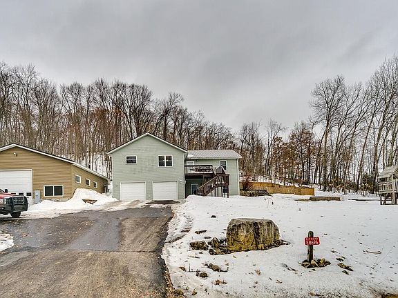 Located between Menomonie and Eau Claire! Conveniently located to Hwy 40, Hwy 12/29, and I-94. This property has 5 bedrooms and a home office! Three full bathrooms! Large open design. Kitchen has abundance of cabinet storage and large peninsula! Master suite with private en-suite. Lower level is walk out and has family room, bedrooms and another full bath. Lots of storage in room off garage! Large 36x28 detached garage or work shop (owner has never used the in-floor heat). Metal roofs on both house and detached garage.