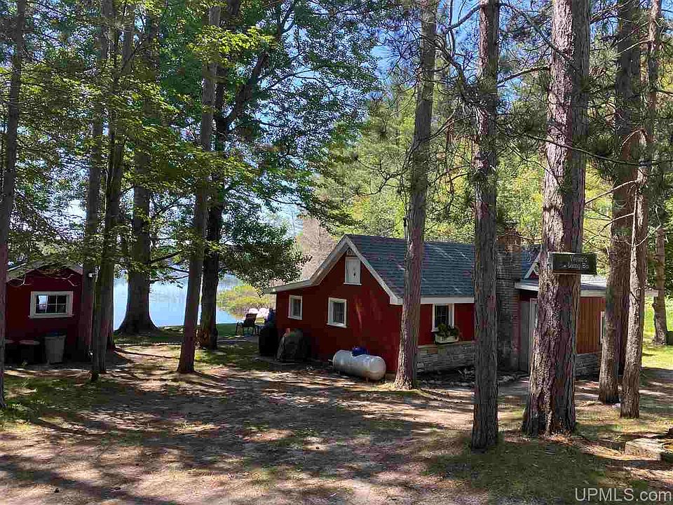 The U.P. lake cabin you have always wanted!! This 2 BR, 1BA cabin is full of unique features and up north feel. The sandy frontage on the popular Lost Lake just outside of Munising lends to swimming, fishing, kayaking, pontooning and relaxing. The covered patio is perfect for those rainy days. The owners did a great job of updating yet keeping the cabin feel. You have all the conveniences of home including a washer but have the calm and peacefulness of camp. All of the cabins furnishings are included so that you can walk in the day of closing and relax. The property also extends across the road where the outhouse and new garage with added snowload trusses are positioned. Behind the garage there is a bench that the owners have used as their pondering spot. The spot overlooks a beautiful marsh with tall trees and remote feel. This cabin is full of great memories and has been dedicatedly maintained by the current owners and is ready for new owners to carry it on!! This property is also zoned for vacation rentals.