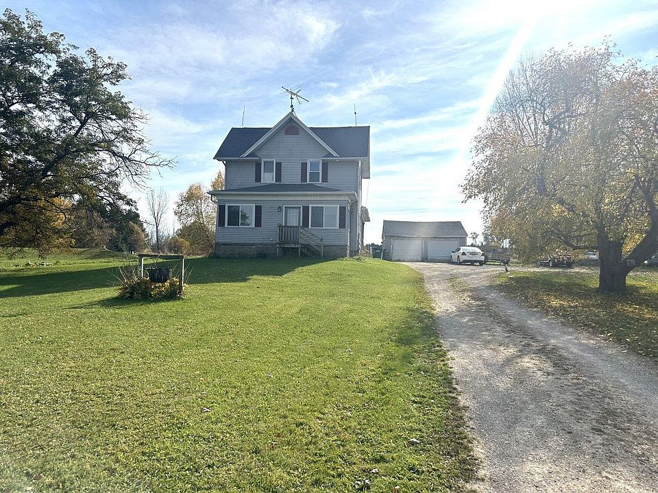 Set on a sprawling three-acre lot, this inviting country home presents a fantastic opportunity for flexible living arrangements. Currently configured as an upper/lower duplex, it retains the original interior stairway, allowing for easy conversion back to a single-family residence if desired. The main level features a living room, an eat-in kitchen, two bedrooms, and a full bath, along with an unheated 11x7 room nice for a home office or extra storage. Upstairs, you'll find a cozy living room, a sitting area, a kitchen, two bedrooms, and a full bath, complete with newer mini-split units and electric baseboard heat. There is a 5x20 covered porch and a 22x24 detached garage for your projects and hobbies. Updates include a new roof, hot water heater, sump pump, and outside back stairs.