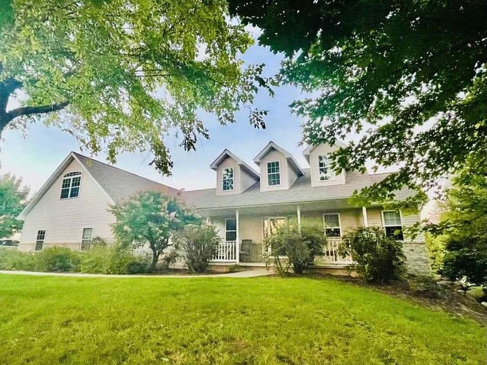 Sunny 4 bed 3.5 bath walk-out Ranch on a private 1.24 acre lot. Living room with brick surround gas fireplace and vaulted ceiling. Large kitchen with breakfast bar and tile floors. Dining room with hardwood floors and trayed ceiling. Primary suite with vaulted ceiling and patio doors to deck. Finished lower level with bar room and new family room. Private park-like yard with 2nd 2.5 car garage, blueberry patch, apple trees, screen porch, deck, and concrete patio. New roof, gutters, and water heater.