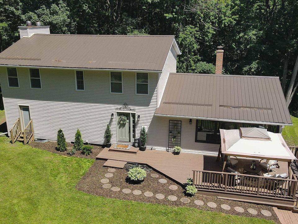 Perfectly nestled on 20 +/- acres is this beautifully updated home with attached garage + heated 36X54 detached shop! Enjoy a Cook’s Delight kitchen stocked with luxury appliances, hard surface countertops, center island snackbar, huge Butler’s pantry, and panoramic views of the wooded backdrop. The main floor offers a large dining area, spacious foyer/living room, office, huge family room with fireplace, convenient half bath, and first floor laundry! Premier Primary suite with attached bathroom with whirlpool tub, tile shower, and walk-in closet! Two additional bedrooms and full bathroom occupy the upper level. So many updates in this beautiful home that feels new from floor to ceiling! Mother Nature’s paradise with wildlife abound is the perfect place to call home!