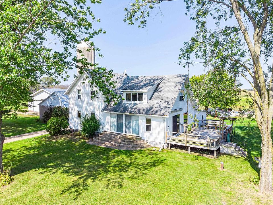 Country Living with Panoramic Views and Expansive Storage! This move-in-ready farmhouse on approx. 2.5 acres offers stunning farmland views, updated windows, and hardwood floors on the second level. The heated breezeway with a wood-burning fireplace adds warmth and charm. A massive 7,810 sq ft pole building features six 12-ft overhead doors, newer metal siding, reinforced trusses, and partial concrete floors. The detached garage includes a 648 sq ft heated workshop with electrical and water. Recent 2023 electrical upgrades include new underground wiring, 200-amp service, and a generator connection. The listed acreage is approximate and based on the preliminary county-reviewed plat, which is pending approval by the buyer and seller.