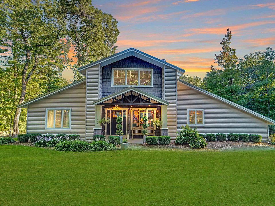 Charming and unique, 1 ½ story home with finished basement. Featuring 4 bedrooms and 3 ½ bathrooms and 3 ½ car garage. The basement offers a home office for remote work, a cozy private space/bedroom for guests and a full bath with cast iron soaking tub. The basement also provides a workout room and family room. This home offers main floor living with an open concept dream kitchen, living room, and a dining room that invites the outdoors in and leads to the screened porch. Main floor also offers a mudroom, separate ½ bath for guests and a master suite. The upper level offers two bedrooms and a full bathroom. Every door leading outside welcomes you to a screened in porch, lower level covered patio, heated pool and wrap around deck. The home sits on 2.4 acres of beautifully manicured land.
