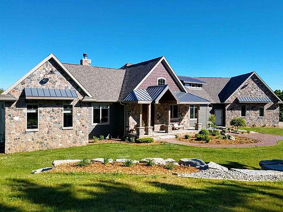 CASUAL ELEGANCE THROUGHOUT THIS ONE OF A KIND CUSTOM WALK OUT RANCH on 5 ROLLING ACRES W/ PRIVATE POND. Built with only the finest finishes this home is located 24 mins west of App Int. Airport. Privacy & views for miles.Spectacular Open Concept, split granite accent wall, wood FP,walk in pantry,huge mudroom,office/add. BR, incredible Master suite,vaulted ceilings w/hand hewn beams, upgraded lighting package, 9ft ceilings, 8ft knotty alder doors,circle saw hickory flrs, custom hickory cab, steel roof accent, prof. landscaping w/quarry rock, lawn sprinkler system .....Breathtaking SUNSETS!