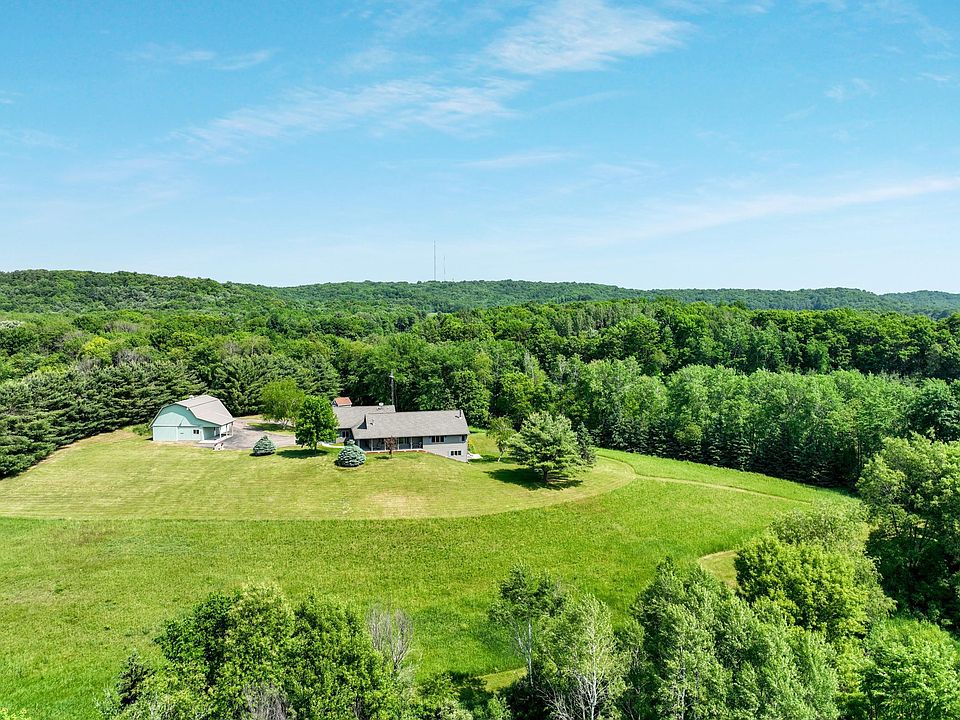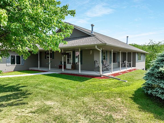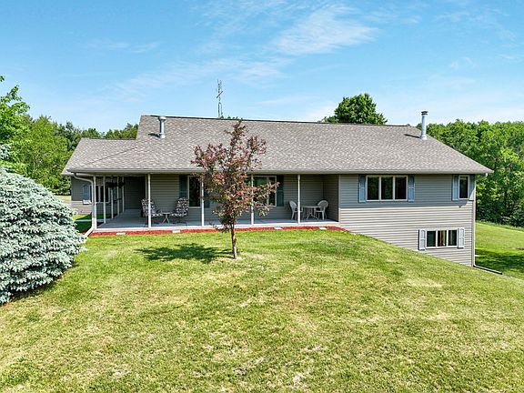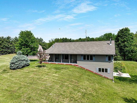 Enjoy your own private country paradise on 12.88 acres where you’ll experience breathtaking views--in every direction--at any hour of the day--all-year round! Open concept 4 bedroom, 4 bathroom one-story walks out on both levels to wonderful outside spaces: large wrap-around porch, huge concrete patio on the main level and another off the lower level. Gorgeous, updated kitchen with new appliances. Recently painted throughout. New LVP flooring on the main. Main level has over 1800 square feet and features a huge owner’s suite, 2 additional bedrooms with walk-in closets, 3 bathrooms and a gas fireplace. Lower level has in-floor heat throughout and features a bright, expansive family room with a cozy wood stove, additional bedroom and bathroom, rec room, bonus room, and tons of storage space! 3-car+ garage with separate access to lower level. 30 x 36 pole shed with concrete floor and lean to. Playhouse and storage shed. Fiber optic to house! This beautiful home is move-in ready!
