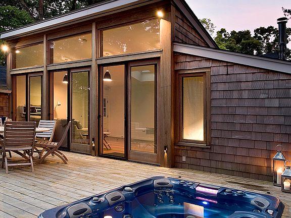 Vintage Fishermans Cottage meets a modern architects addition in Historic Springs. Enjoy the preserved charm of this classic Hamptons Cottage. At the end of the street you discover water access and breathtaking sunsets over Three Mile Harbor. The front of the house (original cottage) features a cozy living room with a wood burning fireplace and one bedroom. The modern addition features two bedrooms, two renovated bathrooms with Duravit fixtures. The modern addition has floor to ceiling walls of glass looking out towards the backyard, brining in lots of sunshine. European kitchen with espresso machine and grinder, butcher block counter tops. Nautical vibes on a quiet street where you can enjoy vacation. This special rental also has a sauna, hot tub, projection TV, Central air and two kayaks for you to use! Outdoor deck space is great for al fresco dining, relaxing in the hot tub, then decompressing in the sauna and outdoor shower. Moments from Jackson Pollock's, De kooning, Duck Creek Arts Center, Maidstone bay beach and Hamptons best restaurants like Bostwicks on the harbor, Sisi at East Hampton Point, Sunset Harbor, Rita cantina and more! Flexible dates available. Please inquire.