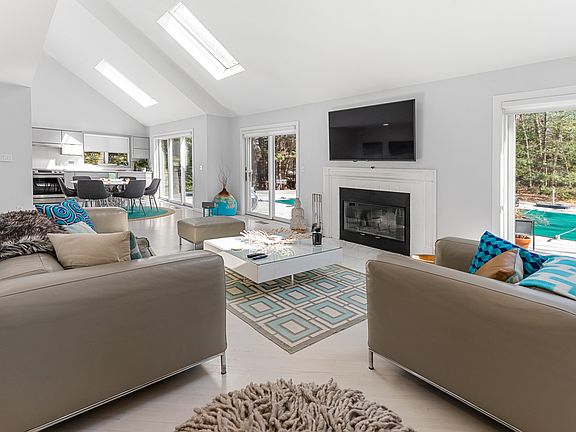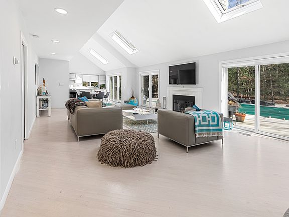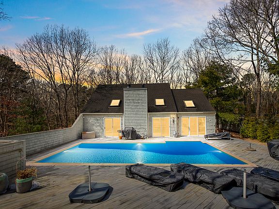 Rental Registration #: Nestled on a quiet street in Northwest Woods, this home enjoys an ideal location just minutes from East Hampton town and beaches. The home is recently renovated from top to bottom and features brand-new white wood floors throughout. With four bedrooms that sleep up to eight guests, three of which offer en-suite baths, there is plenty of space for family and friends. The three completely remodeled bathrooms boast high-end designer tiles, vanities, stall showers, and Jacuzzi tubs. The open, airy interior with chic modern furnishings provides a boutique hotel feel. Outside, the expansive decking surrounds a heated pool on the half-acre property. There is also a convenient outdoor shower. With ample room for entertaining, you'll never want to leave this charming oasis.