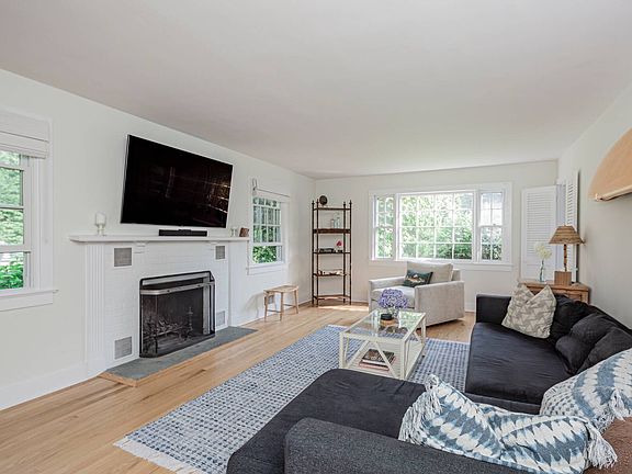 Available July: 22,500 | August -LD: $25,000 | Two Weeks (July - LD): $15,000 | Tucked away on 1.4 impeccably landscaped acres just minutes from East Hampton Village and world-renowned ocean beaches, this newly renovated farmhouse blends timeless charm with modern sophistication. The light-filled first level features an elegant eat-in kitchen with adjoining dining area, a gracious living room with wood-burning fireplace, a private office, and a serene primary suite with ensuite bath. Upstairs, two spacious guest bedrooms share a beautifully appointed full bathroom. French doors from both the kitchen and living room open to a generous bluestone terrace with stylish lounge seating, built-in BBQ, and fire pit, all overlooking a sweeping green lawn. Mature plantings envelop the property, offering complete seclusion. A refined and tranquil Hamptons escape.