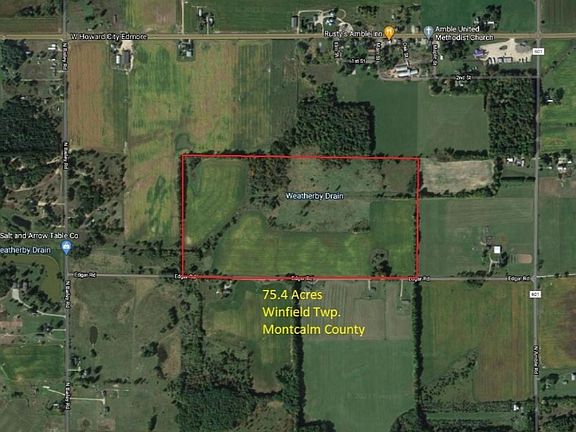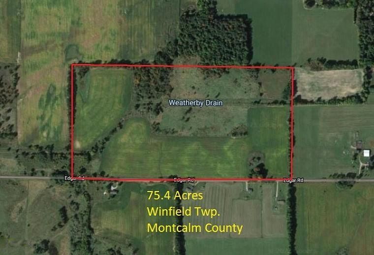 **If you are reading this ad on Zillow, PLEASE scroll down and contact our brokerage firm to see make an appointment to see this property.** This 75.4 Acres (3 parcels) NE of Howard City & Indian Lake has a great mixture of tillable (approx 41 acres), wooded, high & low ground, water source from the Weatherby Drain, thick grass, wild apple trees & excellent rolling terrain. 3 adjacent parcels on the N side of Edgar are being offered as one! Great property for potential build sites, hunting & farming & located just South of M-46! Yearly crop lease in place on tillable land. Great wildlife sign & activity throughout! *Note: Please See Additional Supplement Statement. **Maps contained on our sites are there to simply depict the overall layout or shape of a given property and show what it looks like from an aerial view. These maps are neither a legally recorded map, nor any type of a legal survey and should never be used as such. Also "Acreage" amounts are displayed as according to the information we have obtained through local government and are in no way guaranteed or warranted to be exact.**