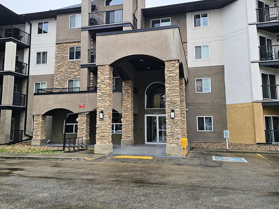 Palisades Pointe Villas, third floor unit with a wonderful balcony view. Offers an excellent floorplan with 2 spacious bedrooms and 2 full bathrooms. Property includes TITLED, heated underground parking stall, along with a storage locker. Generous sized primary bedroom features a walk-in closet and a 4pc ensuite. Well planned floorplan includes for a generous dining area, features a well-designed kitchen and eating bar and a nice living room space. The balcony includes a bbq gas line. Finished with laminate flooring and carpet, this unit is a great starter opportunity. Close to all amenities: schools, shopping, public transportation, and with quick access to the both Yellowhead Trail and the Henday.